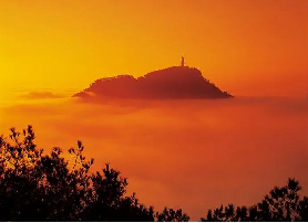 赤城山位于浙江天台西北方向,山色赤赭如火,又称“烧山”,因山上赤石屏列如城,望之如霞,故此得名。赤城山是天台山中唯一的丹霞地貌景观,山有石洞十二,山顶有赤城塔,为南朝梁岳阳王妃所建,道书记载赤城山玉京洞为道教第六洞天。