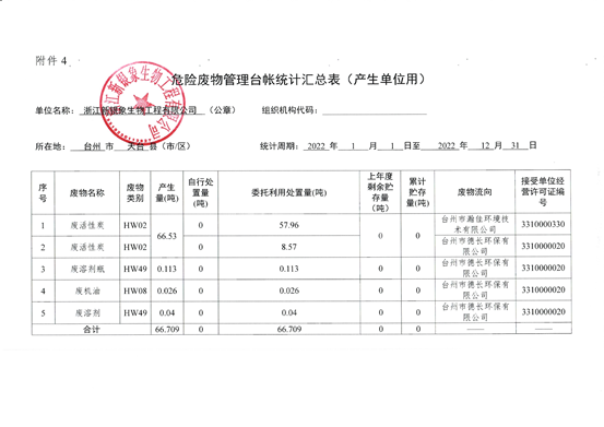现将已提交2022年危险废物污染环境防治信息公开,接受公众监督。